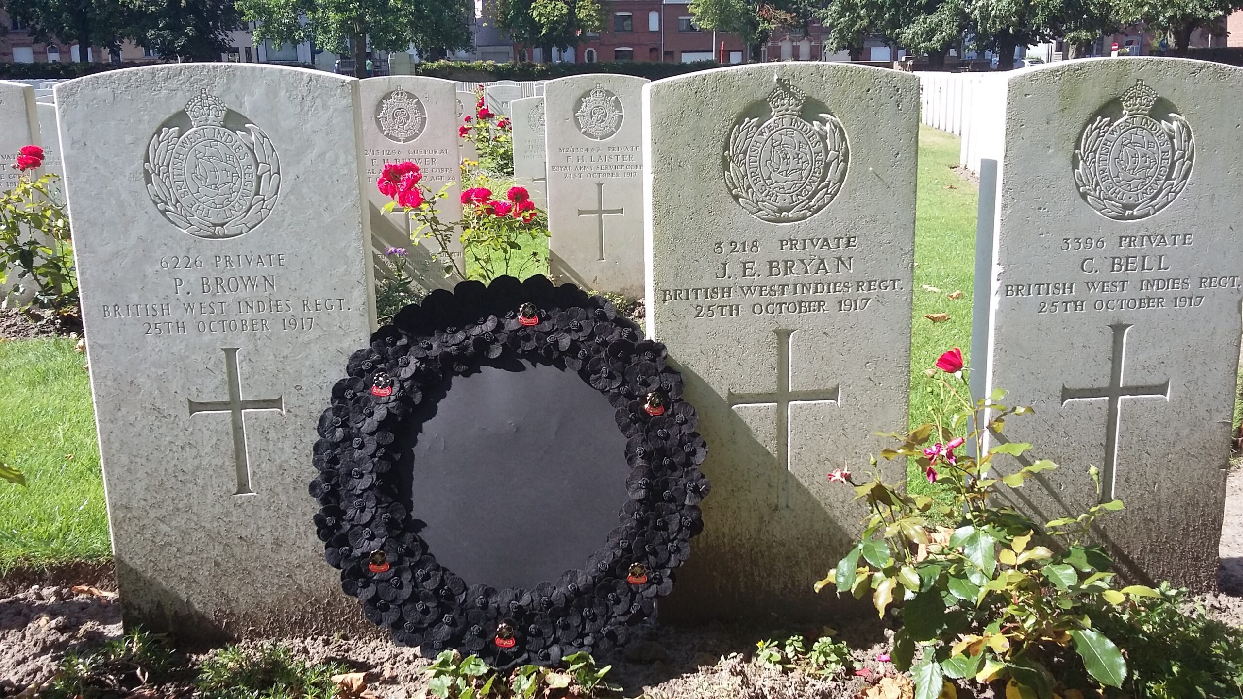 Pictured top: A BlackPoppyRose wreath laid in France for fallen First and Second World War soldiers (Picture: Selena Carty)