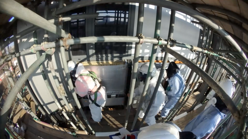 Pictured top: Image shows cladding removal during the Met’s investigation of the Grenfell Fire (Picture: The Met)