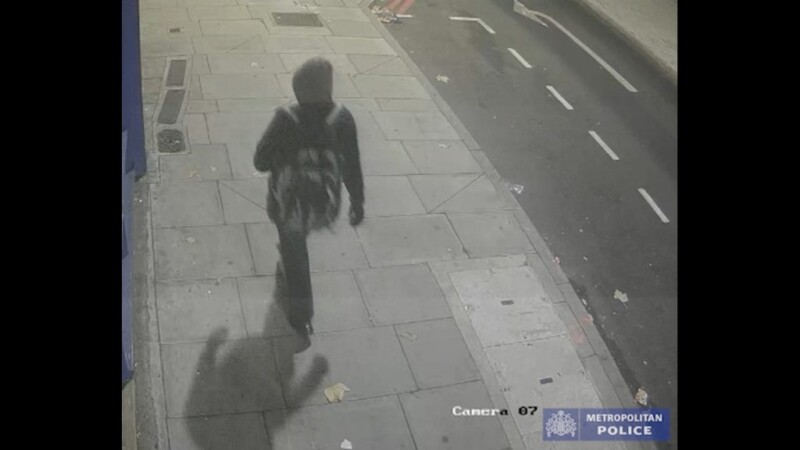A series of CCTV clips show the suspect, who appears to be aged in his 20s or 30s, dressed in a hooded top, dark-coloured jacket and trousers or jogging bottoms, dark trainers and carrying a rucksack. He is seen in the footage walking along Deptford Broadway towards the junction with the A2209 and then along Reginald Road at about 5am on December 2.