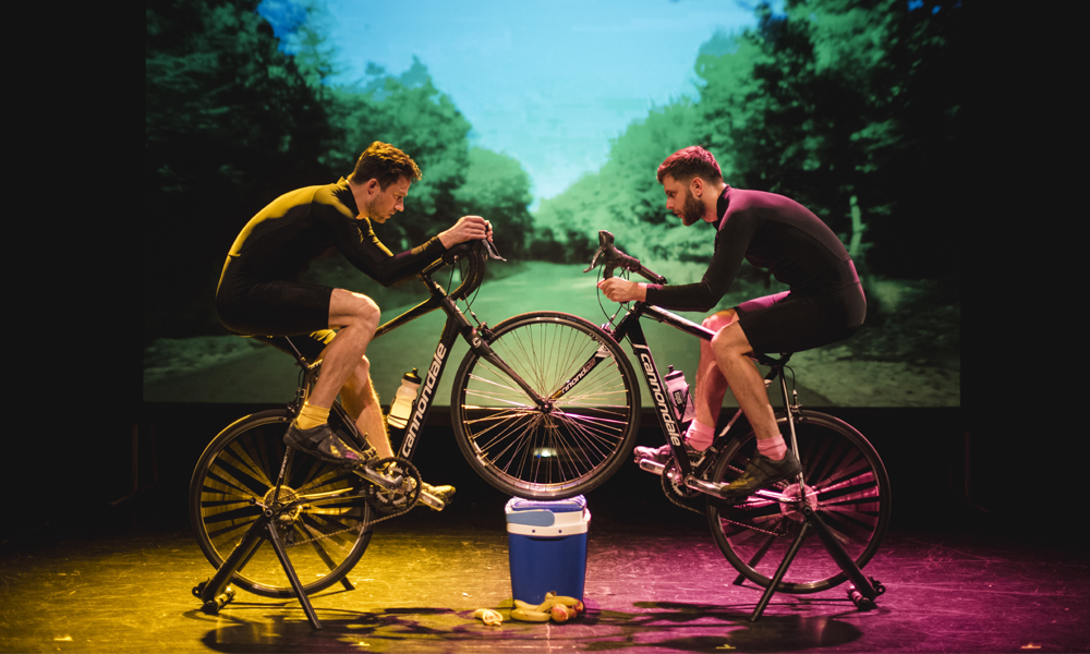 Ventoux, from 2Magpies Theatre, tells he story of professional cyclists Lance Armstrong and Marco Pantani, and their Tour de France battle on Mont Ventoux in 2000. At the time both were champions in their own right. Armstrong had won the Tour de France the previous year, and Pantani the year before that. After a thrilling head to head on the race’s most fearsome mountain they crossed the line together, but their careers subsequently spiralled in very different directions. Armstrong won an astonishing 7 consecutive Tour de France titles while Pantani died of a cocaine overdose alone in a hotel room.