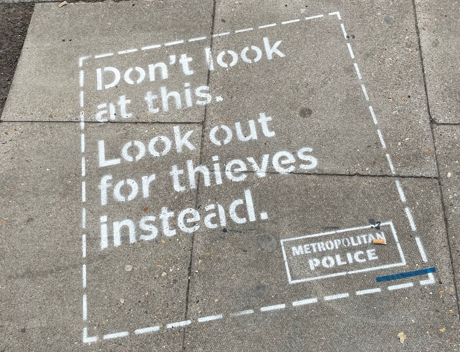 The council, in collaboration with the Met, also recently ran an awareness campaign with chalk stencils which said ‘Don’t look at this. look out for thieves instead,’ displayed around Greenwich town centre in crime hotspots.
