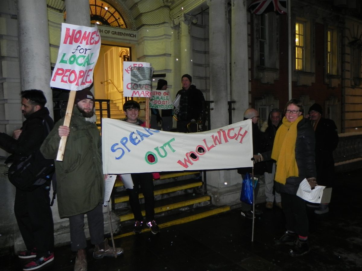 The protest on Wednesday was led by the Speak Out Woolwich community group.