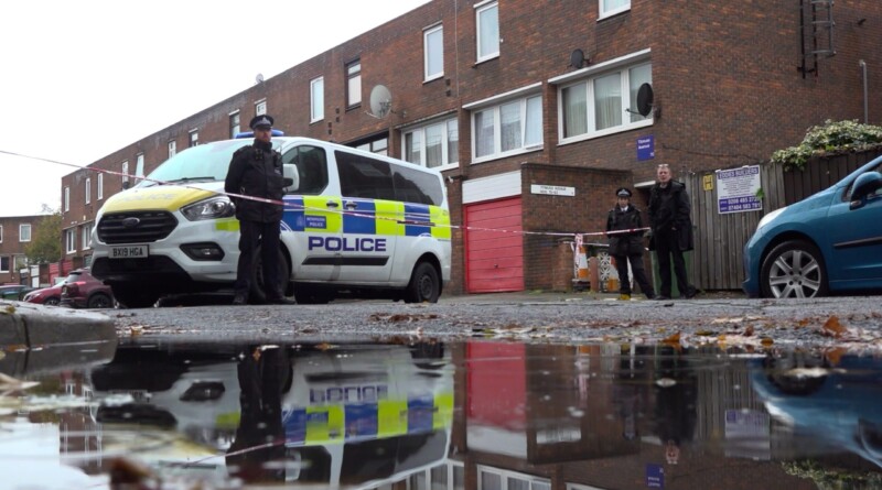 Pictured top: The scene in Titmuss Avenue, Thamesmead (Picture: PA)