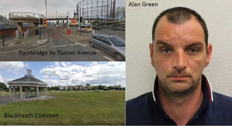 On March 9 at 4.30am, Green approached a woman in her 50s on her way to work walking across Blackheath Common and pushed her to the ground then attempted to rape her before he fled the scene on his bike.