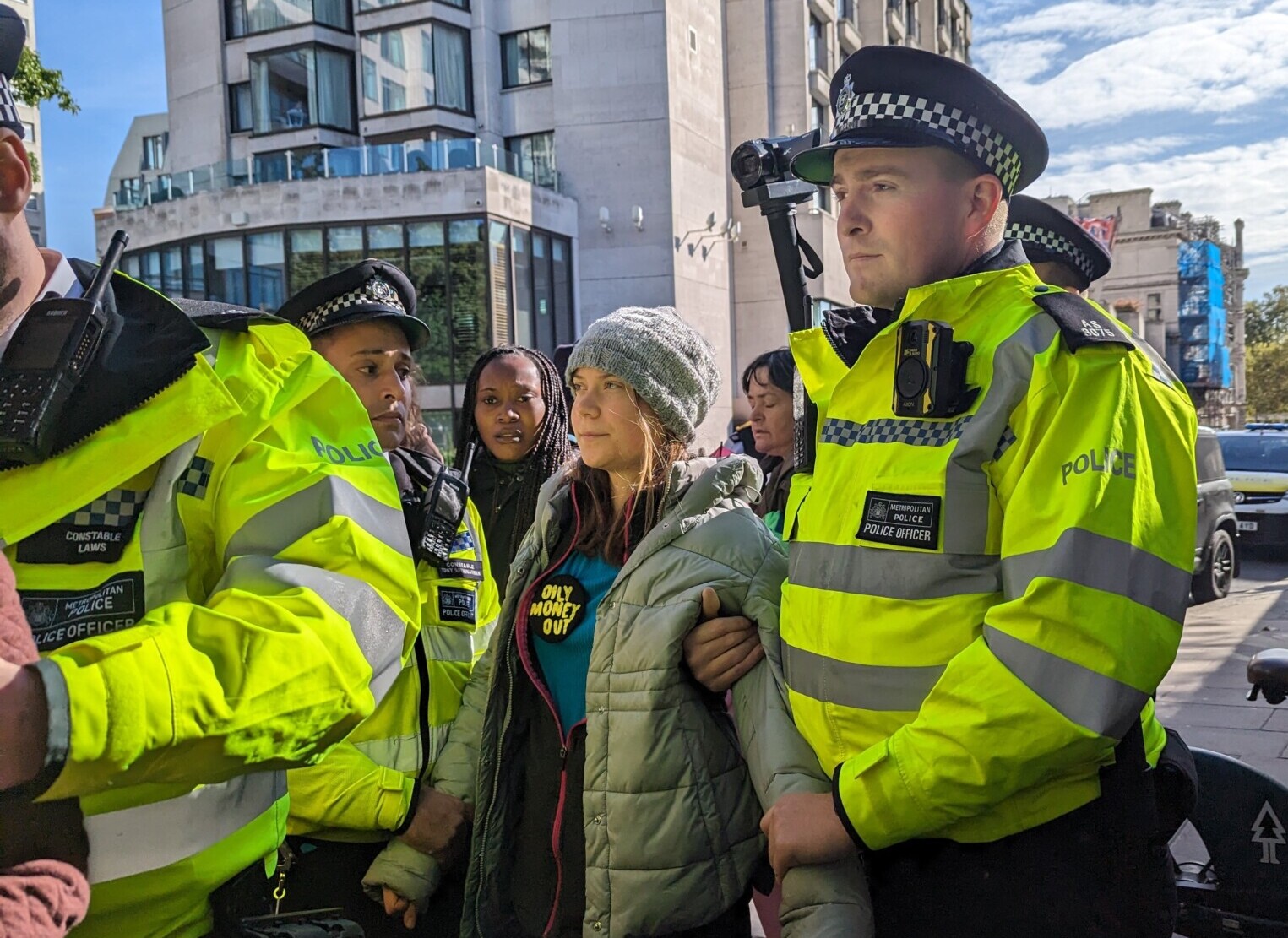Climate activist Greta Thunberg was among a group of people arrested today at a protest against an event hosting companies from the global oil industry.
