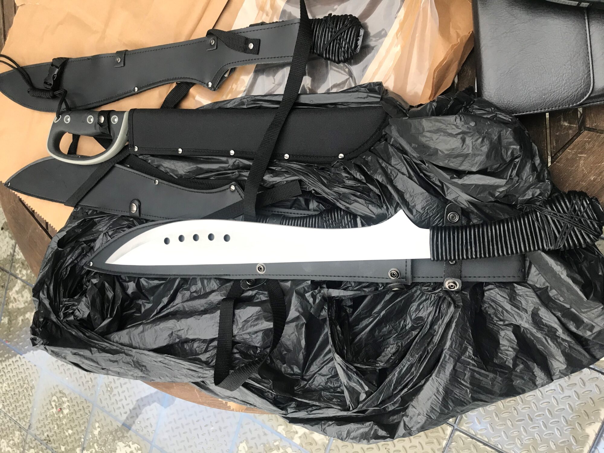 Detectives from the Specialist Crime Command unit executed a firearms warrant the flat last Monday (January 18) where they found the self-loading handgun with three bullets inside, plus the knives with blade lengths ranging from 15 to 19 inches.