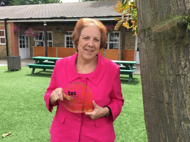 Pictured: Denise Fox winning a TES Lifetime Achievement Award.