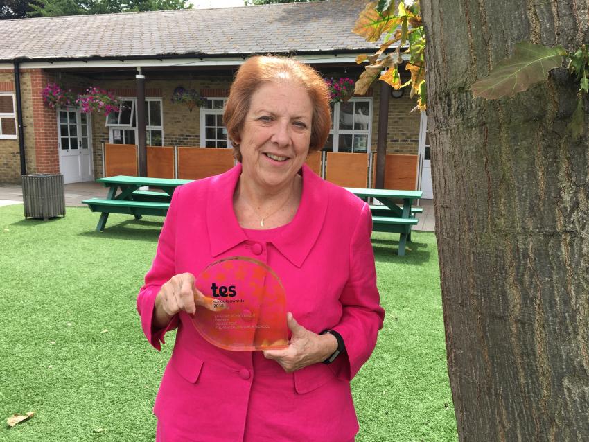 Pictured: Denise Fox winning a TES Lifetime Achievement Award.