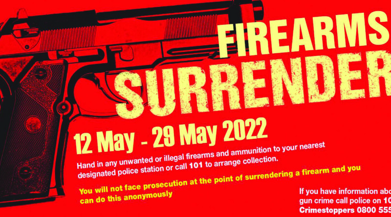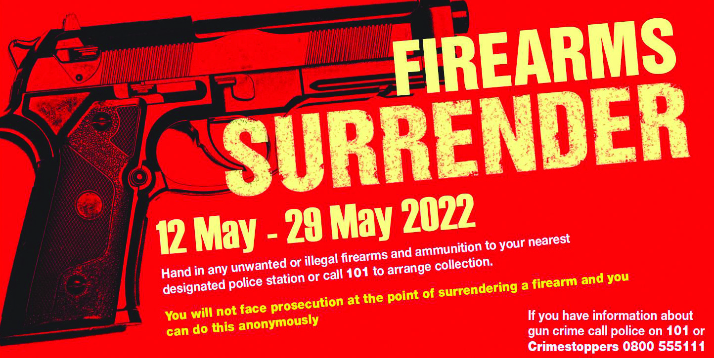 The Met is taking part in the national surrender and asking those with firearms and ammunition to hand in their weapons. Those who do so will remain anonymous and will not face prosecution for the illegal possession at the point of surrender.