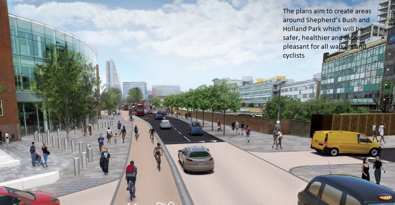 The idea is to create areas around Shepherd’s Bush and Holland Park which will be safer, healthier and more pleasant for all walkers and cyclists.