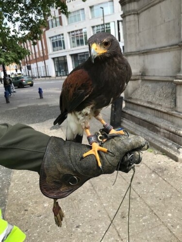 Bella is from GB Hawking, a family-run falconry business based in Kent, which has worked with sports stadiums, railway stations, schools and offices – among other places.