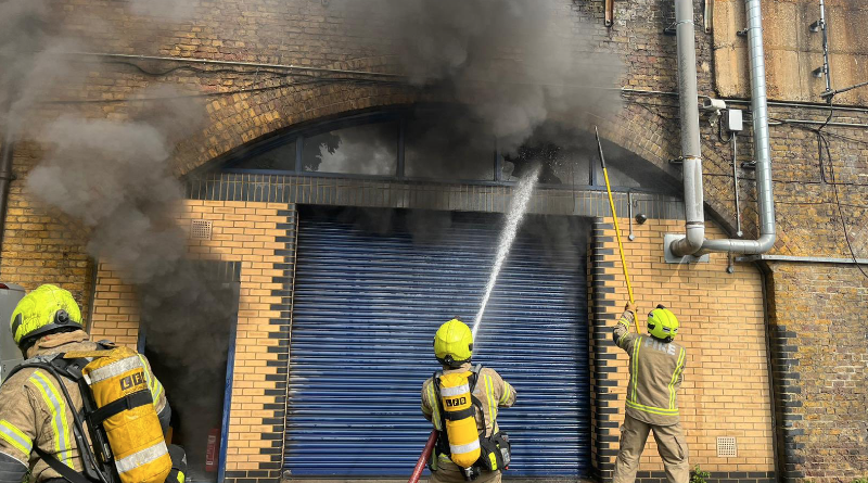 Heavy smoke reaches railway track from blaze under arches