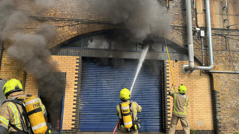 Heavy smoke reaches railway track from blaze under arches