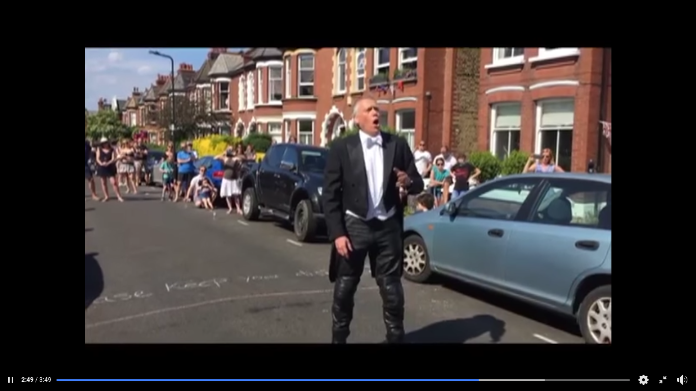 Instead, he was performing at a street party for VE Day on Friday in front of a decent smattering of well-spaced residents of Fieldhouse Road, Balham.