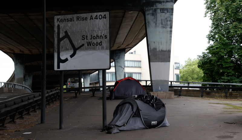 Beneath one of London’s busiest roads, a small collection of tents are dotted between the large concrete supports supporting the Westway dual carriageway.