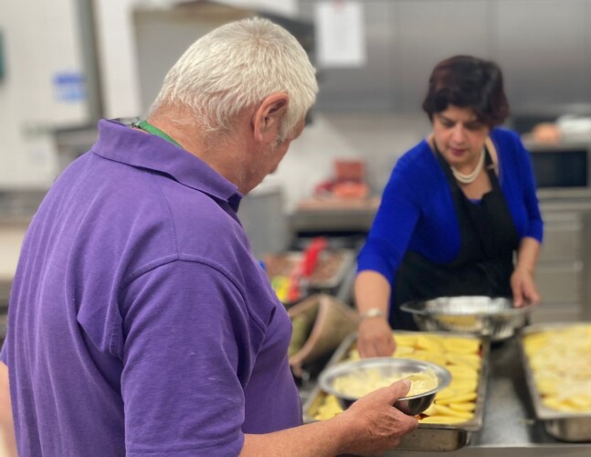 Emmaus volunteer Kait cooks with one of the people supported by the charity (Picture: Emmaus)