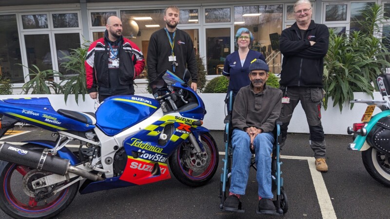A motorbike-loving patient got an early Christmas present from hospice staff as he was treated to a display of their bikes.