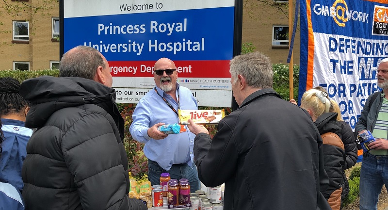 The workers’ union, GMB, organised the event and brought food packages for the employees who say the change in pay has made it difficult to buy essential items. Terry Xerri, a hospital worker at the Princess Royal, said: “This has impacted me a lot.