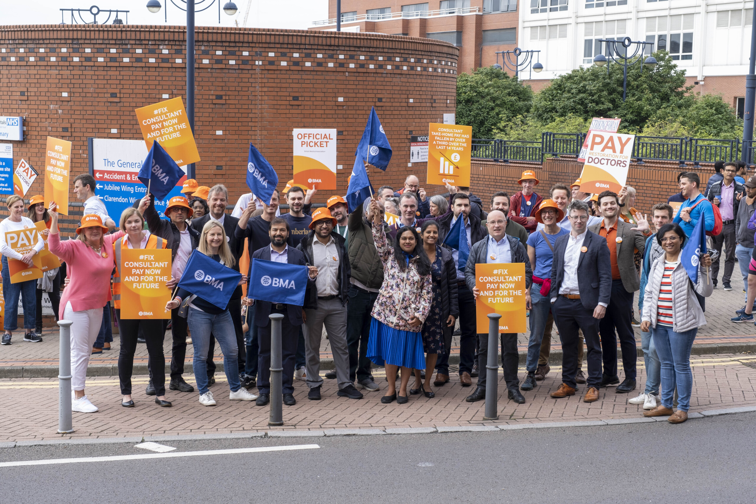 Pictured top: Consultants on strike this year (Picture: BMA)
