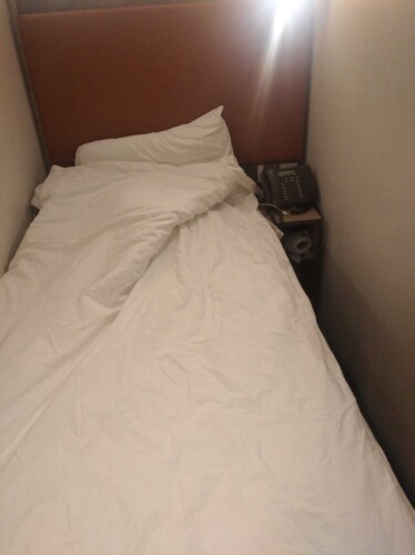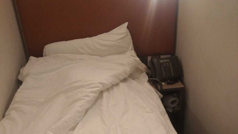 Pictured top: A small box room in the hotel (Picture: Adam Yasir)
