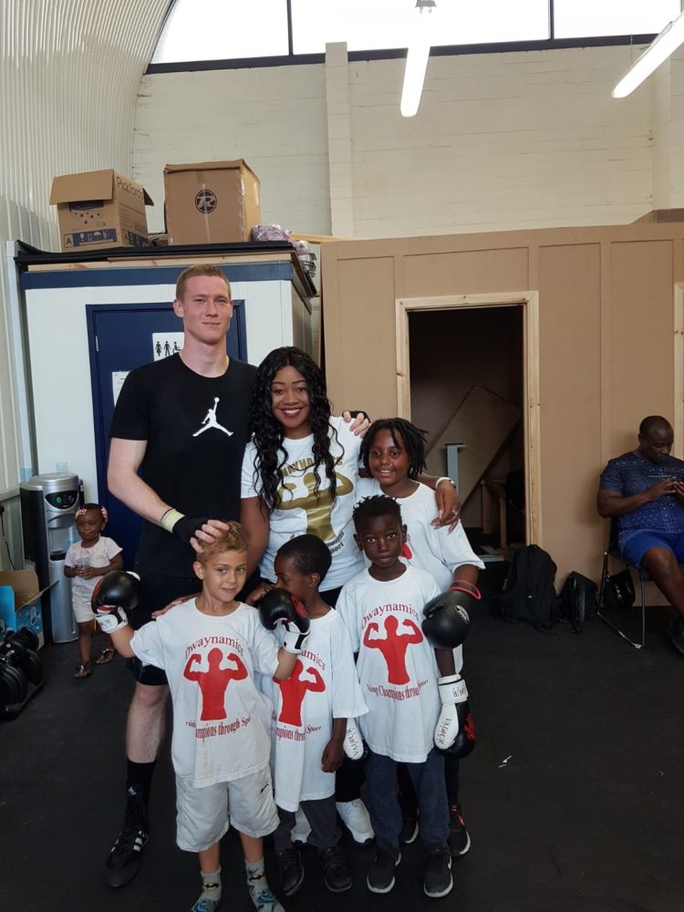 Coaches from Dwayamics and the Met ran through sparring and skipping drills before pro middleweight Germaine Brown, holding his latest championship belt, gave an inspiring pep talk.
