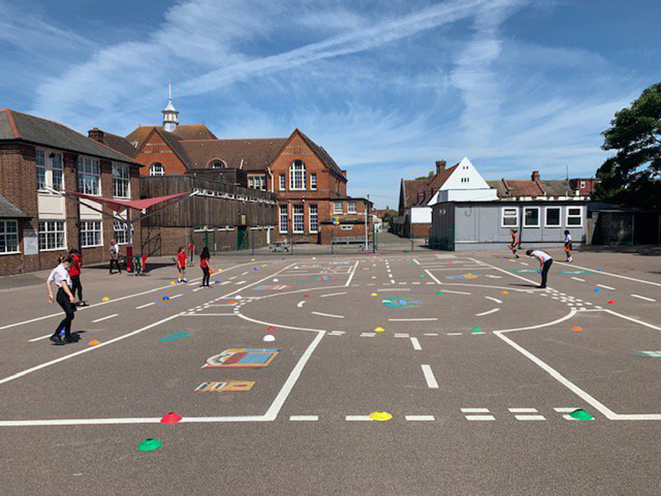 In the playground break-times are staggered and children are kept apart with the use of different zones.