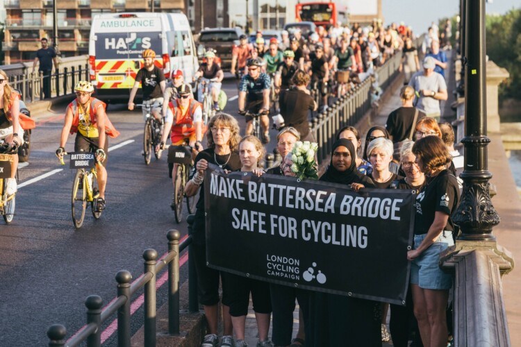 Simon Munk, head of campaigns at LCC, said: “Last night, hundreds of people cycled over Battersea Bridge to mark a month since a 27-year-old woman was killed cycling here.