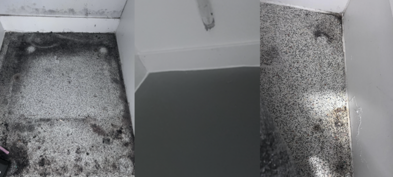 But Ms Mendez said that when she moved back in in August, the mould had just been covered with plastic sheets of lino, which she can lift up to reveal the dark patches.