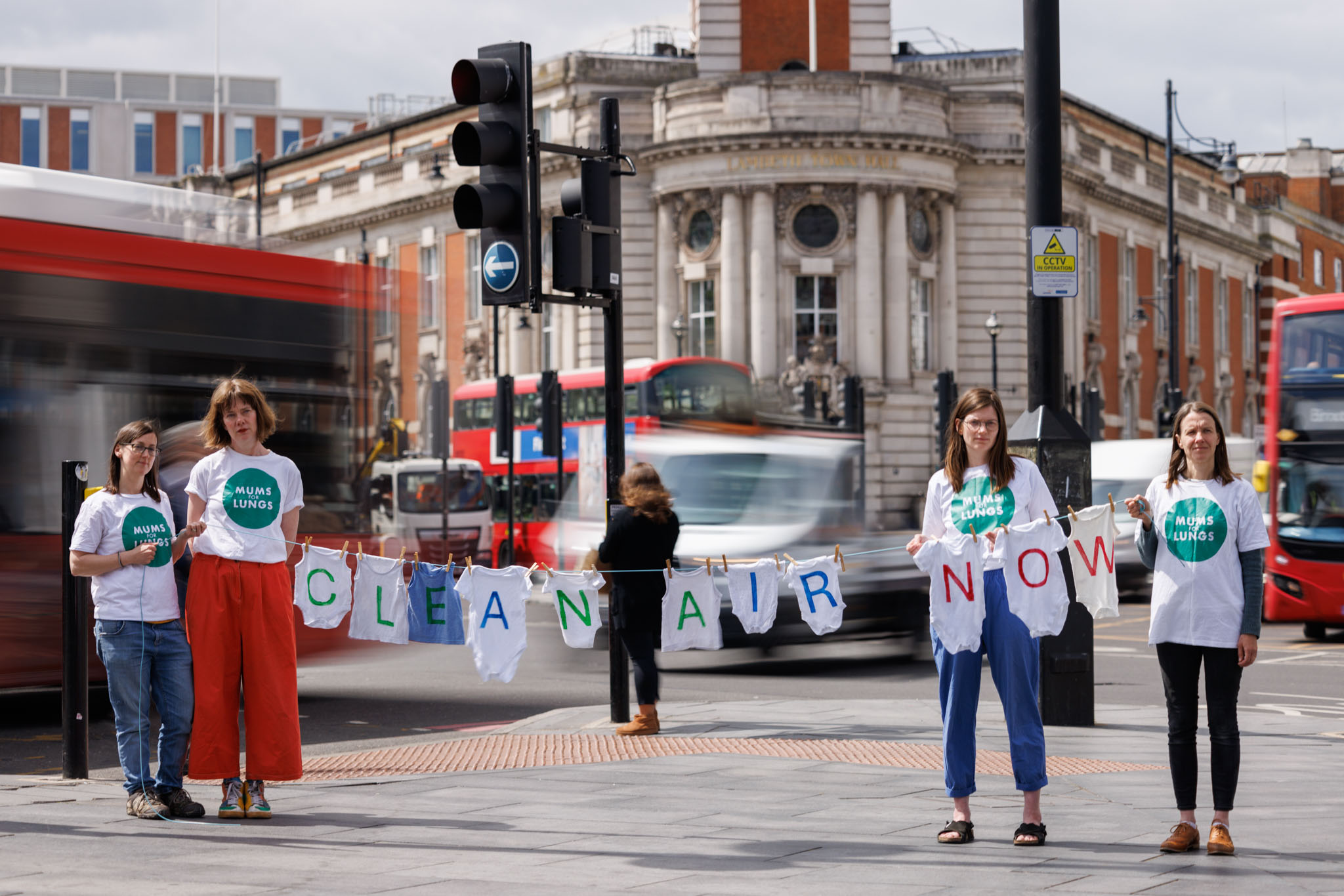 Parents have been hanging baby grows that spell out ‘Clean Air Now’ near areas affected by high levels of pollution and in breach of World Health Organisation standards, including Lambeth Town Hall, near King’s College Hospital.
