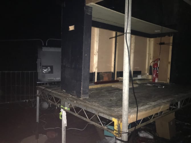 Upon forcing entry, they found sound equipment, barriers, a temporary bar and a DJ table all set up.