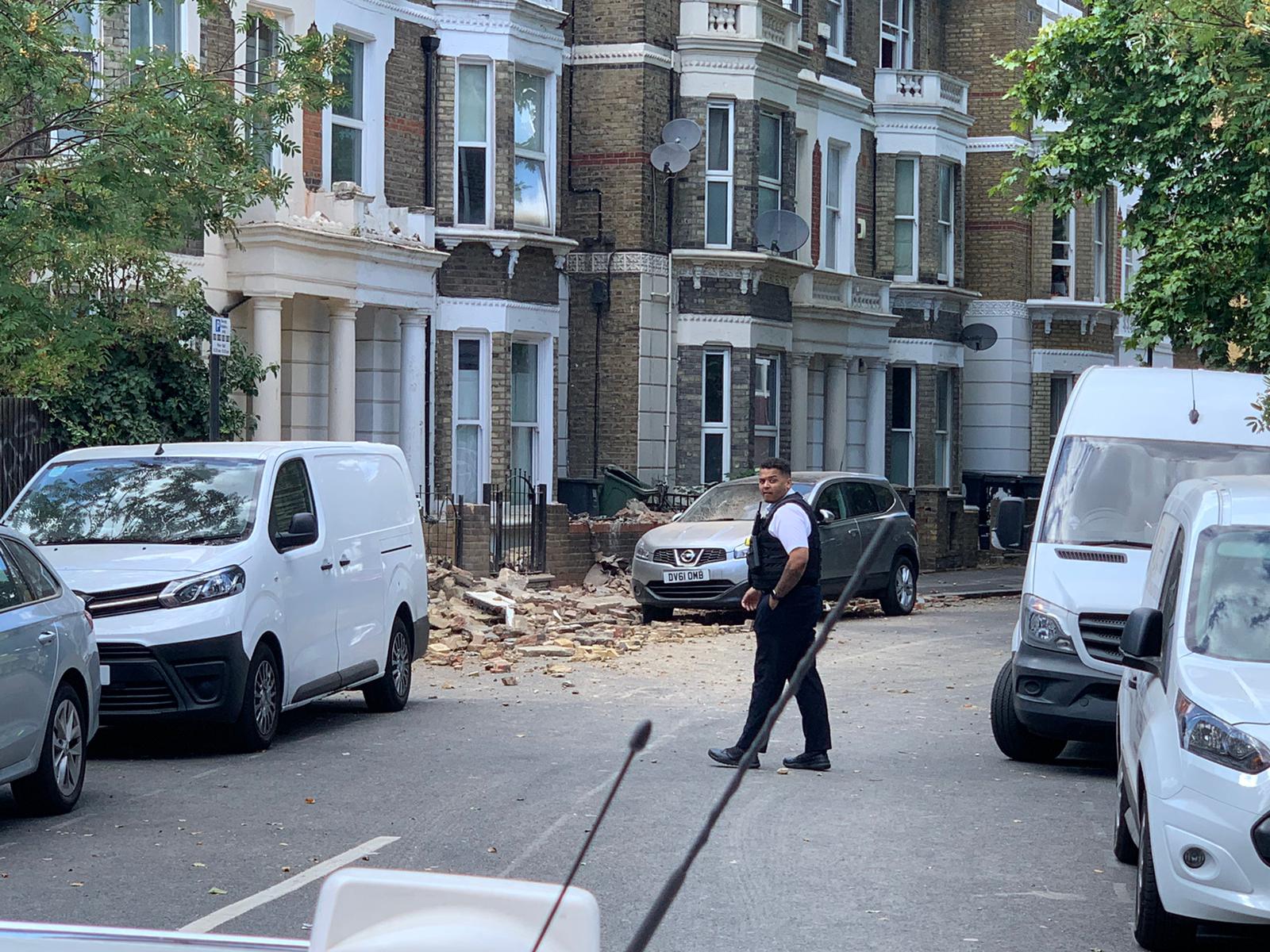 Pictured top: Rubble on the ground of Stockwell Avenue (Picture: @CARS_AND_VANS_LDN)