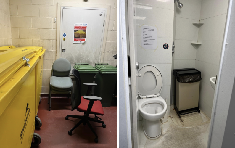 Pictured top: Unite said the hospital trust has refused to improve “appalling” facilities for its workers (Picture: Unite Union)