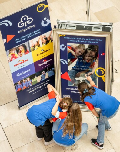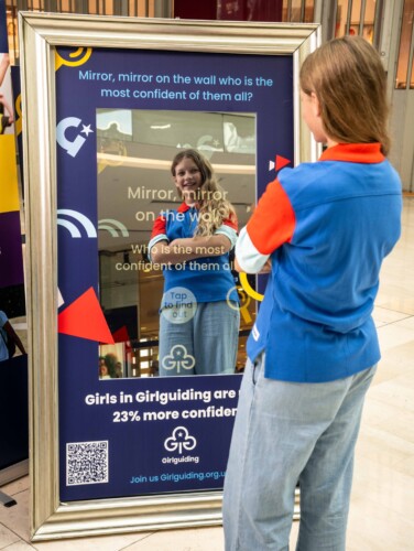 A group of Girlguides took to Westfield to highlight a confidence challenge faced by young girls, using an interactive mirror to help them make positive comments about themselves.