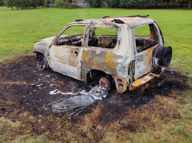 While the car wreckage remains at the site, leaving a scorched patch of grass, the council said no long-term damage has been done and has committed to removing the vehicle soon.
