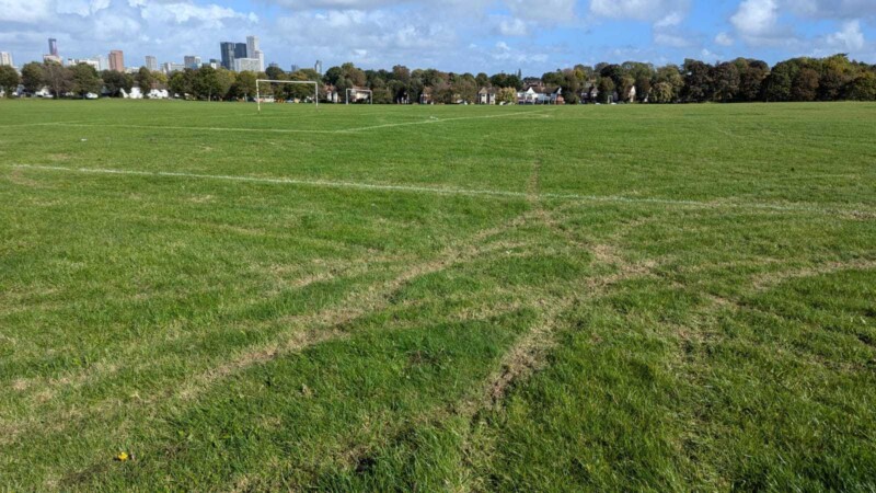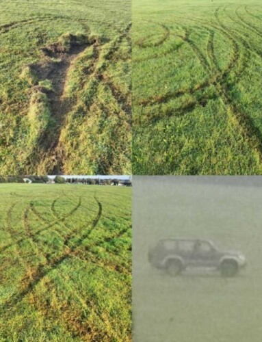 The news follows a similar incident on Sunday night, in which a Mitsubishi 4×4 was seen revving its engine and driving doughnuts around the fields. It left deep tyre tracks across several football pitches.