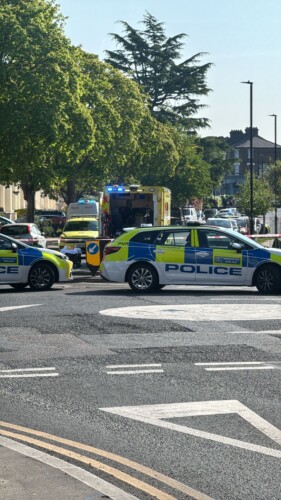 Pictured top: Emergency response cars at the scene on Monday (Picture: Solve the School Run)