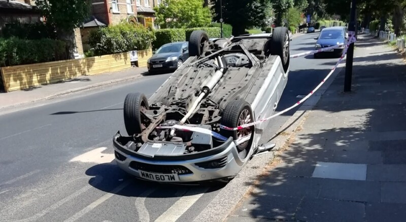 Croxted Road, a main road that runs between Brockwell Park and West Dulwich station, has been the scene of many dramatic car crashes this year. Of the 25 recorded collisions, at least five have seen cars flipped onto their roofs. Luckily there have been no fatalities.