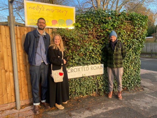 From left, residents Alex Farrington, Susan Hirt and Tom Palmer outside Nelly’s Nursery in Croxted Road (Picture: Alex Farrington)