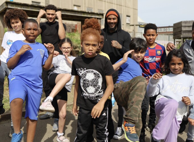 Pictured top: Children and BUC staff during an MMA session at the playground (Picture: @Yomi.Kadejo)