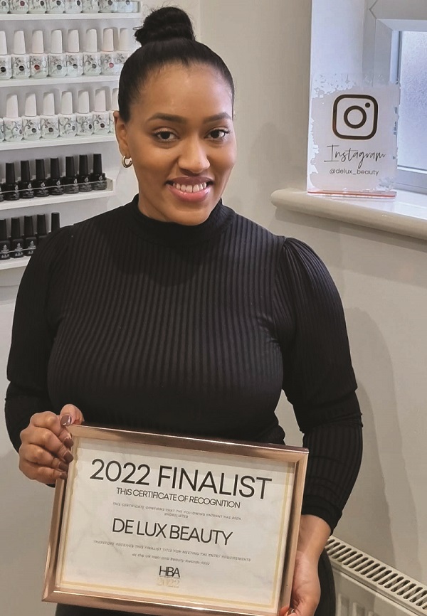 De Lux Beauty, in Brixton Hill, Brixton, has been shortlisted in the UK Hair and Beauty Awards 2022 for Best Brows, Best Gel Nails, Beauty Therapist of the Year and Entrepreneur of the Year.