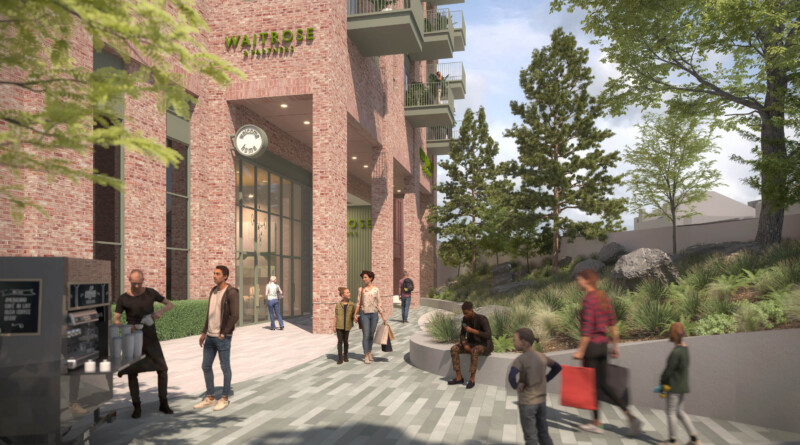 A public piazza will be at the heart of the development, as well as a new flagship Waitrose store and cafe.