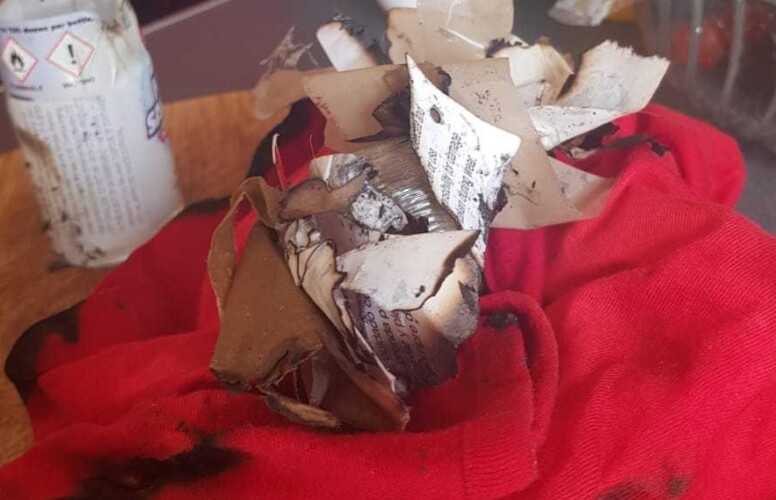 “If my partner had not been in the place could have burnt down. It burnt through one of the bottles, it would have exploded.”