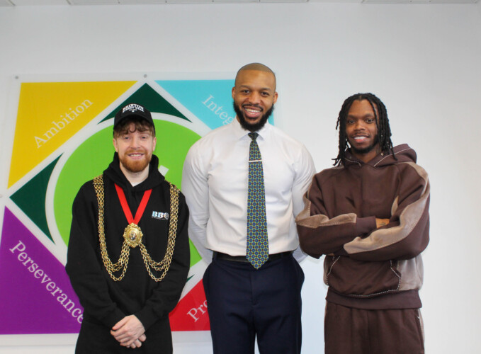 Pictured top: Lambeth Mayor Councillor John-Paul Ennis, Presenter Richard Asomugha and Krept at Ark Evelyn Grace Academy (Picture: Ark Evelyn Grace Academy)