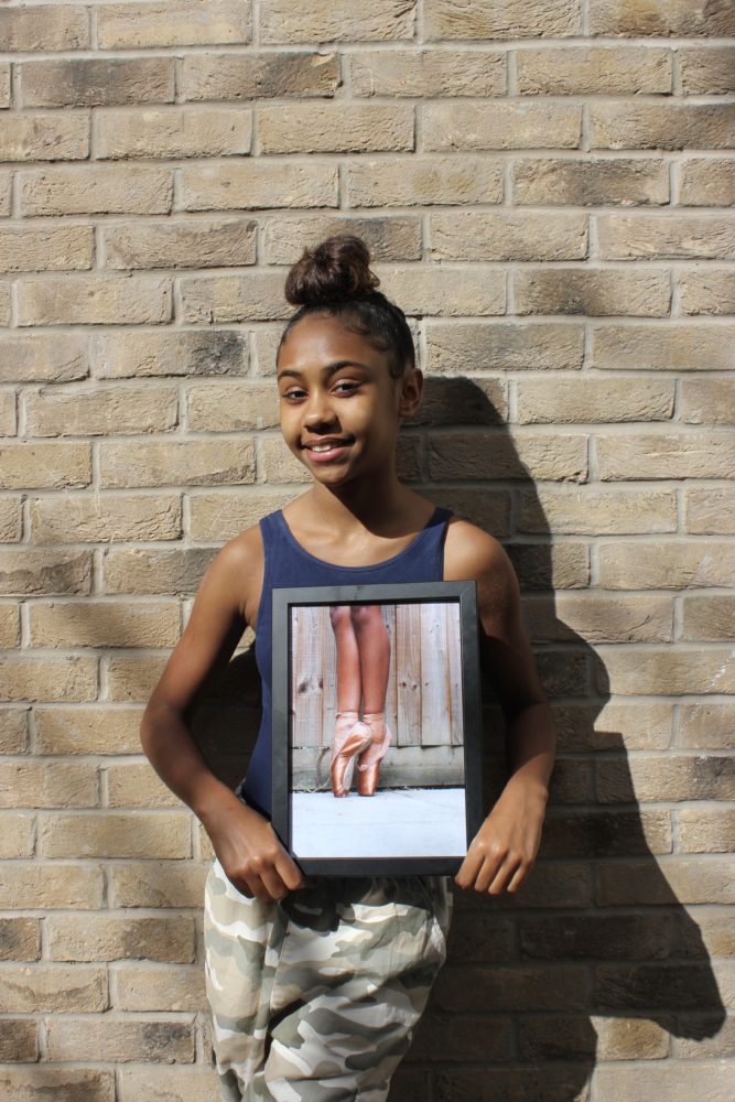 She said: “My art piece is a photograph of my feet in my skin matching pointe shoes that I took with the self-timer on my mum’s SLR camera.