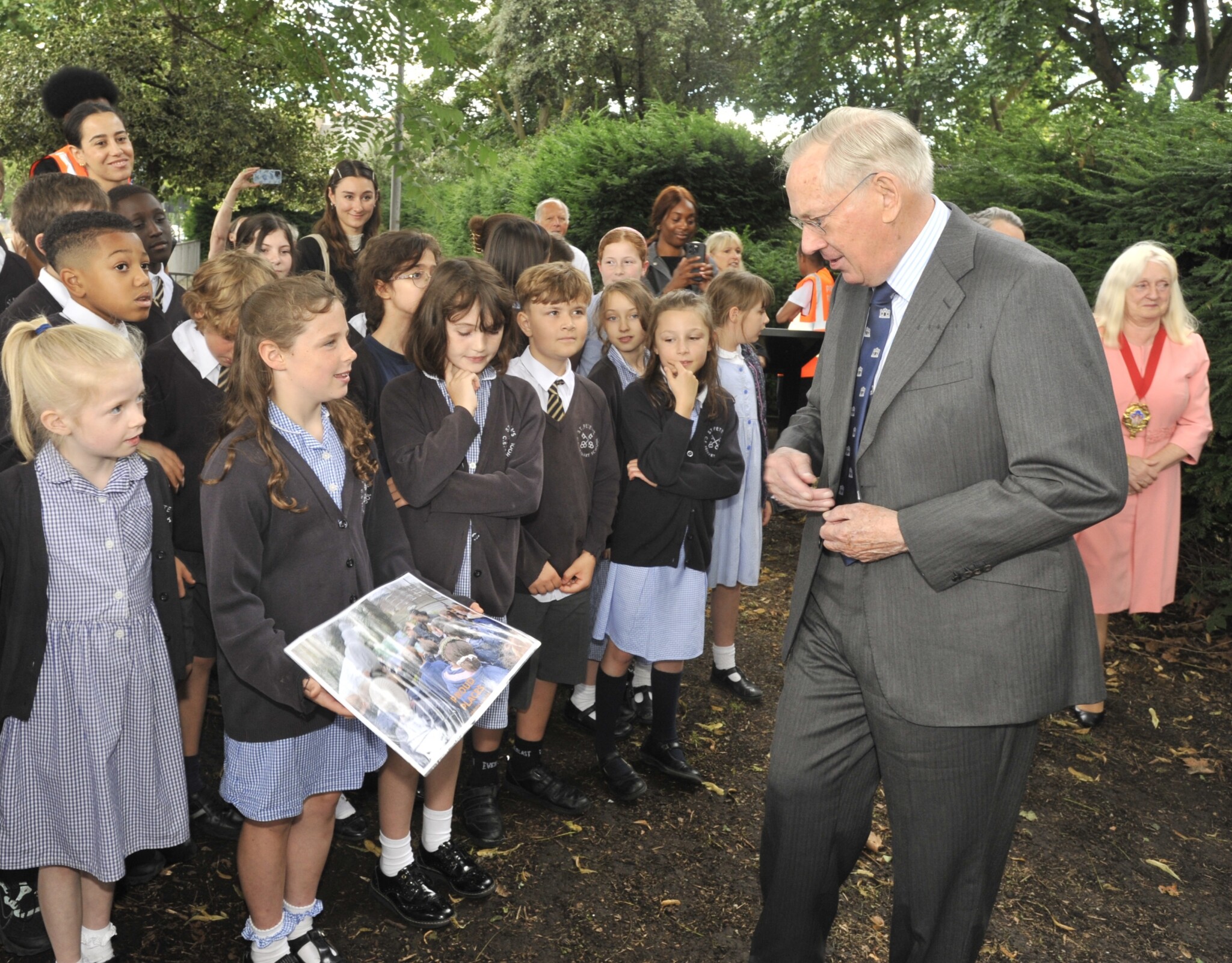 Pictured top: The Duke of Gloucester with pupils at the unveiling (Picture: Heritage of London Trust)