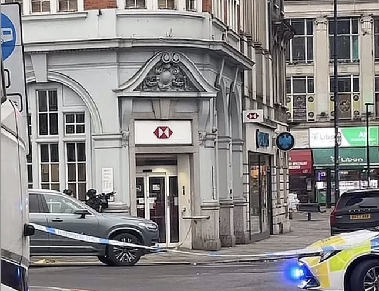 Images posted on social media showed armed police surrounding the HSBC bank, with the area cordoned off by police tape.