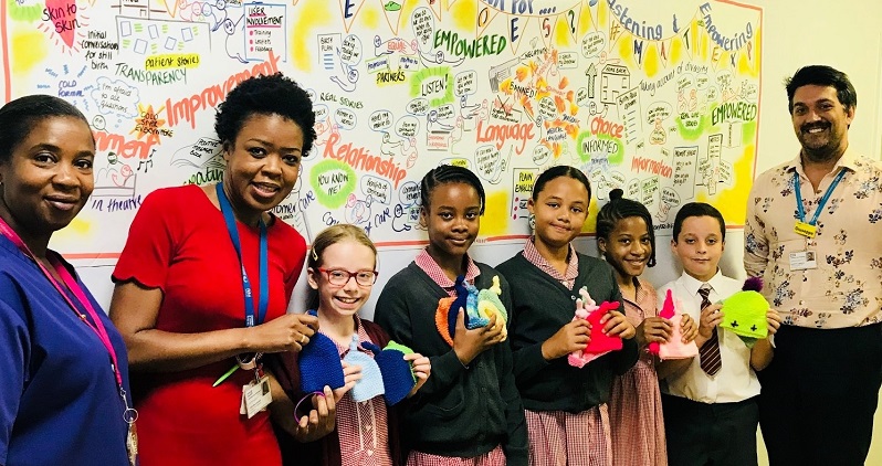 Lewisham pupils from St Winifred’s School knit baby hats for University Hospital London