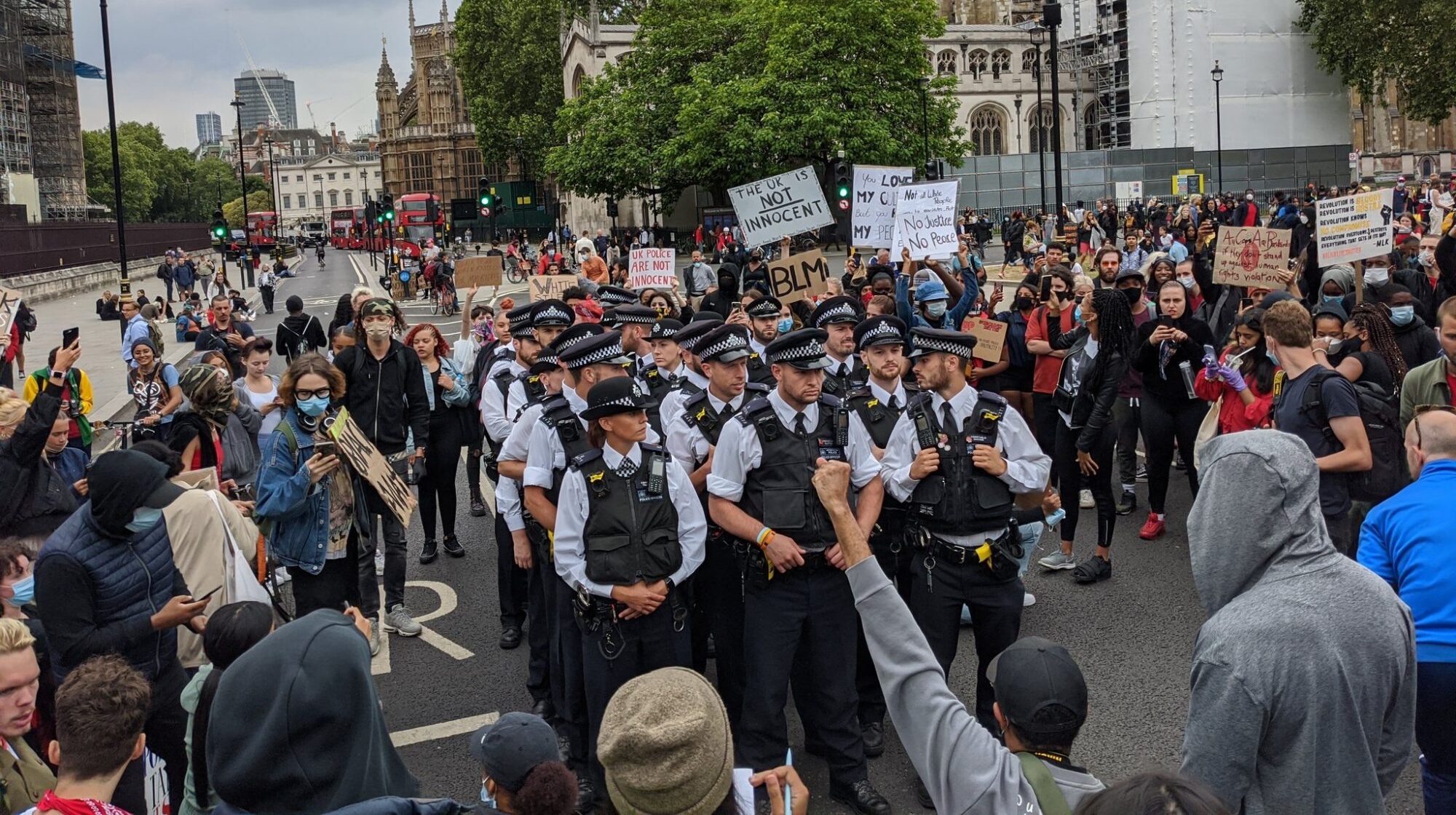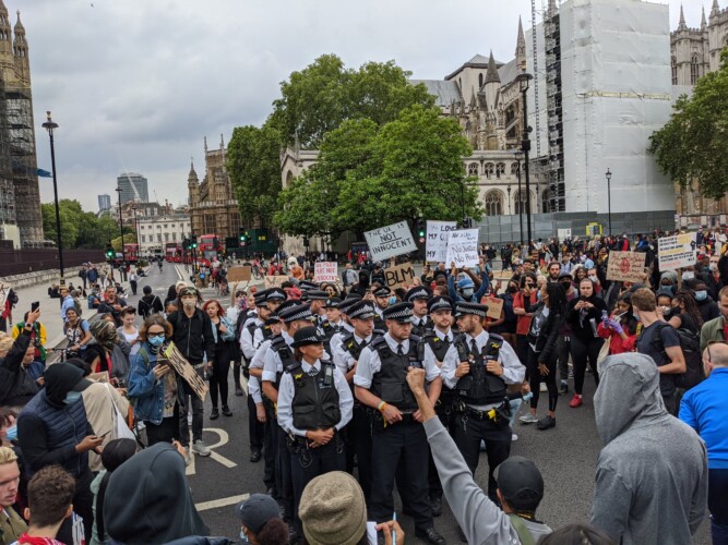Pictured: Police at Black Lives Matter protest in London this year, credit James Twomey