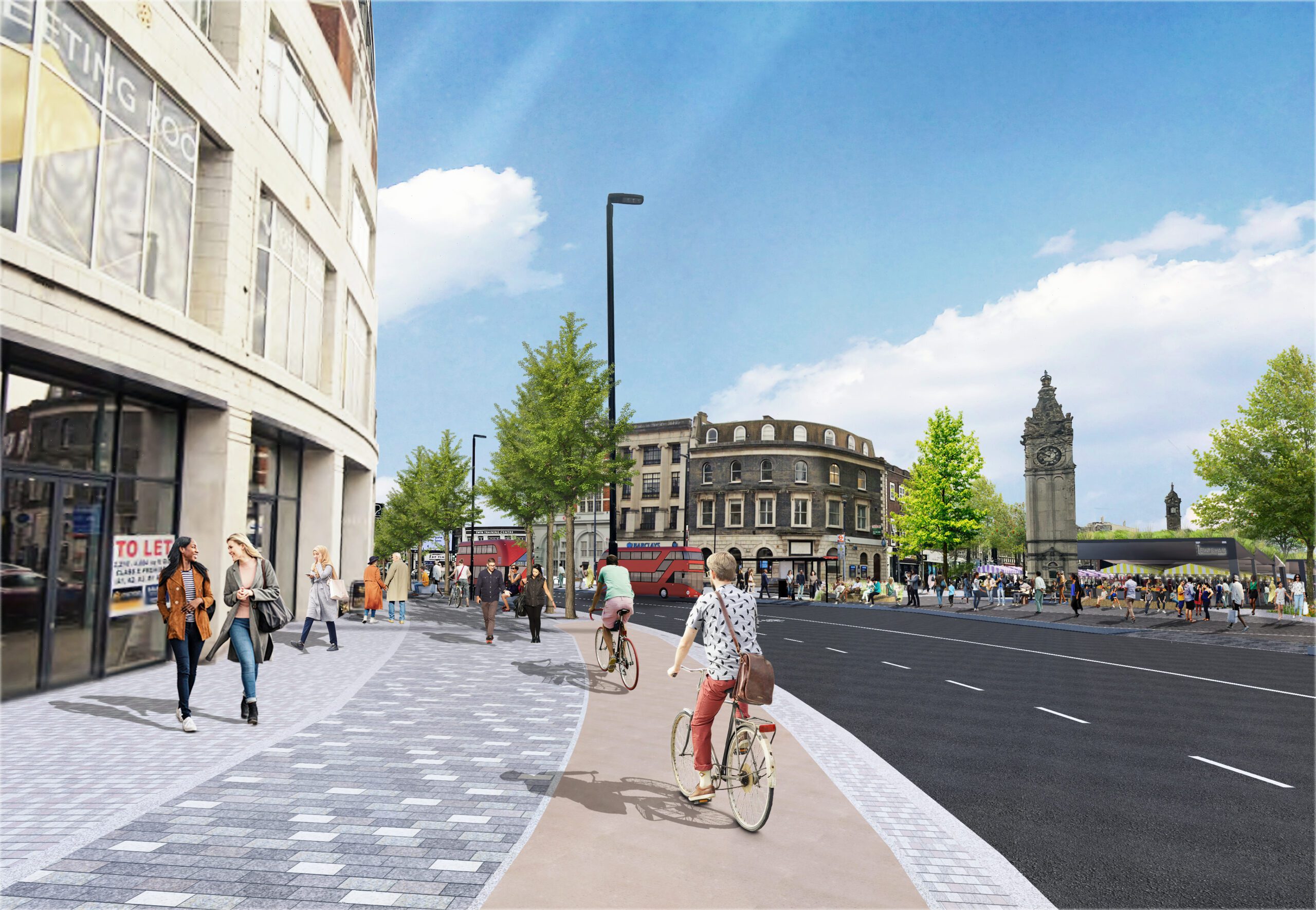 Pictured top: An indicative visualisation of the proposed improvements to Lewisham High Street (Picture: Lewisham council)