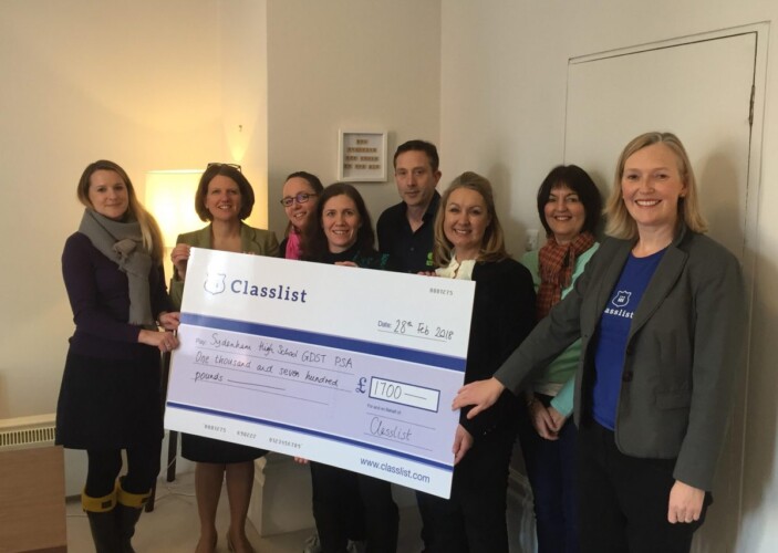 Sydenham High School, in Westwood Hill, received a £1,700 cheque after its Parent and School Association (PSA) started a new fundraising scheme through the website Classlist.